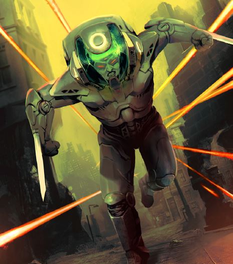 Finally, the "Uber-Advanced" unit had an appearance which was visually brutal.  It had to have been voted 'most likely to go rogue and kill as many users as possible' on the design room floor.  A drawback it had, despite the cost, was that it also had no legs, and relyed on its gravUnit.  It was also designed to be a devastating blade combat unit, and could likely be hijacked as a blade combat battle-'droid by the nefarious.  The unit's main selling points were that its systems were designed for extreme speed and high-density storage.  So, it could cover every element of as many weapons possible at the same time.  And to also have the same capability with tactics and maneuvers.